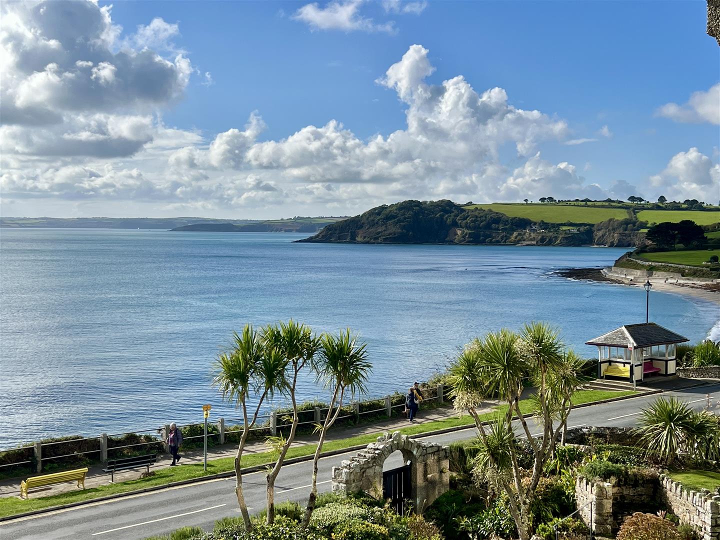 With stunning panoramic vistas across Falmouth Bay and out to the ocean, the expansive views are visible from the living room, dining area, kitchen, and balcony. This ideally positioned apartment serves as a perfect sanctuary for relaxation, allowing you to soak in the sun-drenched seaside atmosphere, all just a stone's throw from Gyllyngvase Beach.