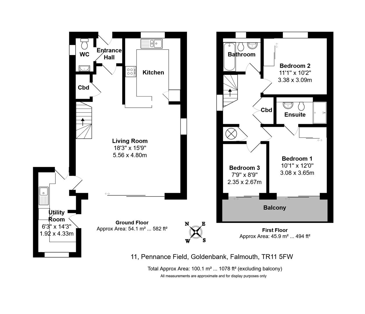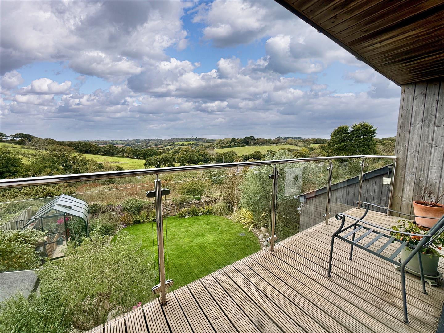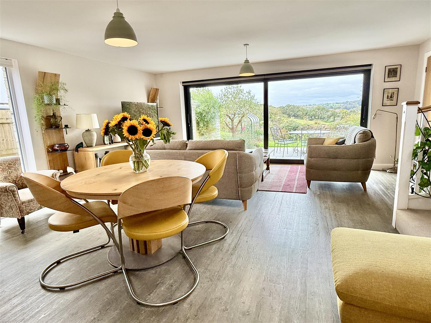 The accommodation is finished to a high standard throughout. The ground floor features a welcoming hallway, cloakroom, and a spacious open-plan living area with a refitted high-quality kitchen, incorporating composite worktops, integrated appliances, and sleek contemporary units. Quality replacement aluminium double-glazed sliding patio doors connect the living space to the garden, flooding the room with natural light. A side extension provides a generous utility room with both internal and external access, adding valuable functionality. Remotely operated blinds are also included in the sale. Upstairs offers three bedrooms, including a master with en suite and a broad glass-fronted balcony, perfect for enjoying the open views. A further double bedroom, single bedroom/office and modern family bathroom complete the layout.