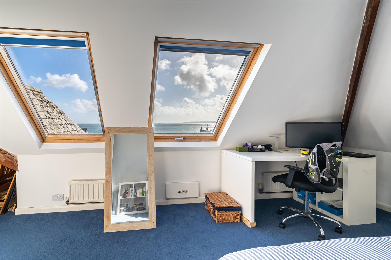 Built during the Edwardian period (circa 1919), this charming home boasts many of the classic architectural features of the era, such as an ornate rear balcony and beautifully detailed gable ends beneath a natural slate roof. Spanning an impressive 2,400 sq.ft, the property offers generously proportioned rooms, many of which take full advantage of stunning views over Falmouth Bay. With up to five bedrooms, including a luxurious principal suite with an adjoining dressing room, this home is ideal for families and professionals alike—though the captivating sea views may prove a tempting distraction for those working from home!