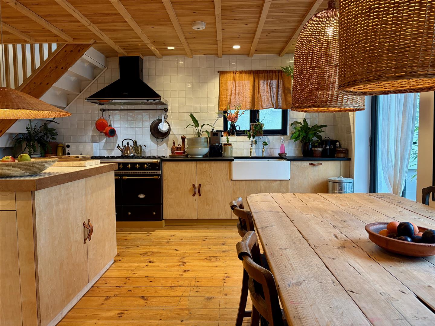 • Bespoke, hand-built kitchen with birch ply cabinetry and slate worktops