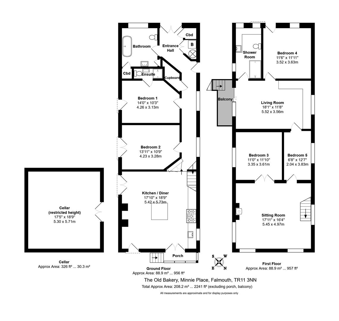 As its name suggests, The Old Bakery is a former bakery of generous proportions, offering flexible accommodation currently arranged as four (potentially five) bedrooms, with the added benefit of three stylishly appointed bath/shower rooms. Many rooms enjoy far-reaching views over Falmouth Bay, the Carrick Roads, and landmarks including Trefusis Point, St Just in Roseland, St Mawes, Pendennis Castle, and the surrounding coastline.