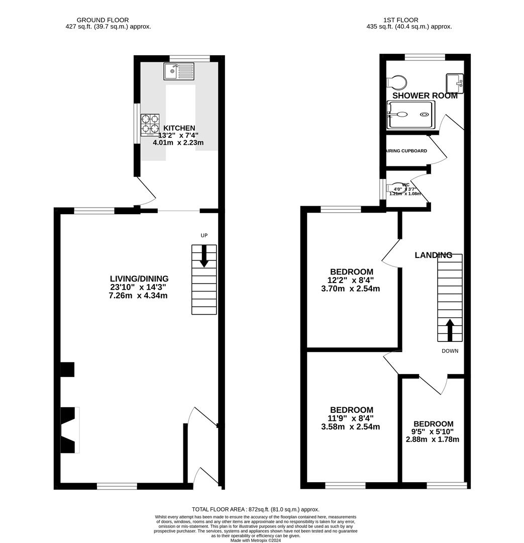 Heating is provided by a mains gas combi boiler, supplemented by the woodburning stove in the living room. Recently, the double reception rooms have been opened up, all in accordance with building regulations, allowing light to flow through the ground floor.