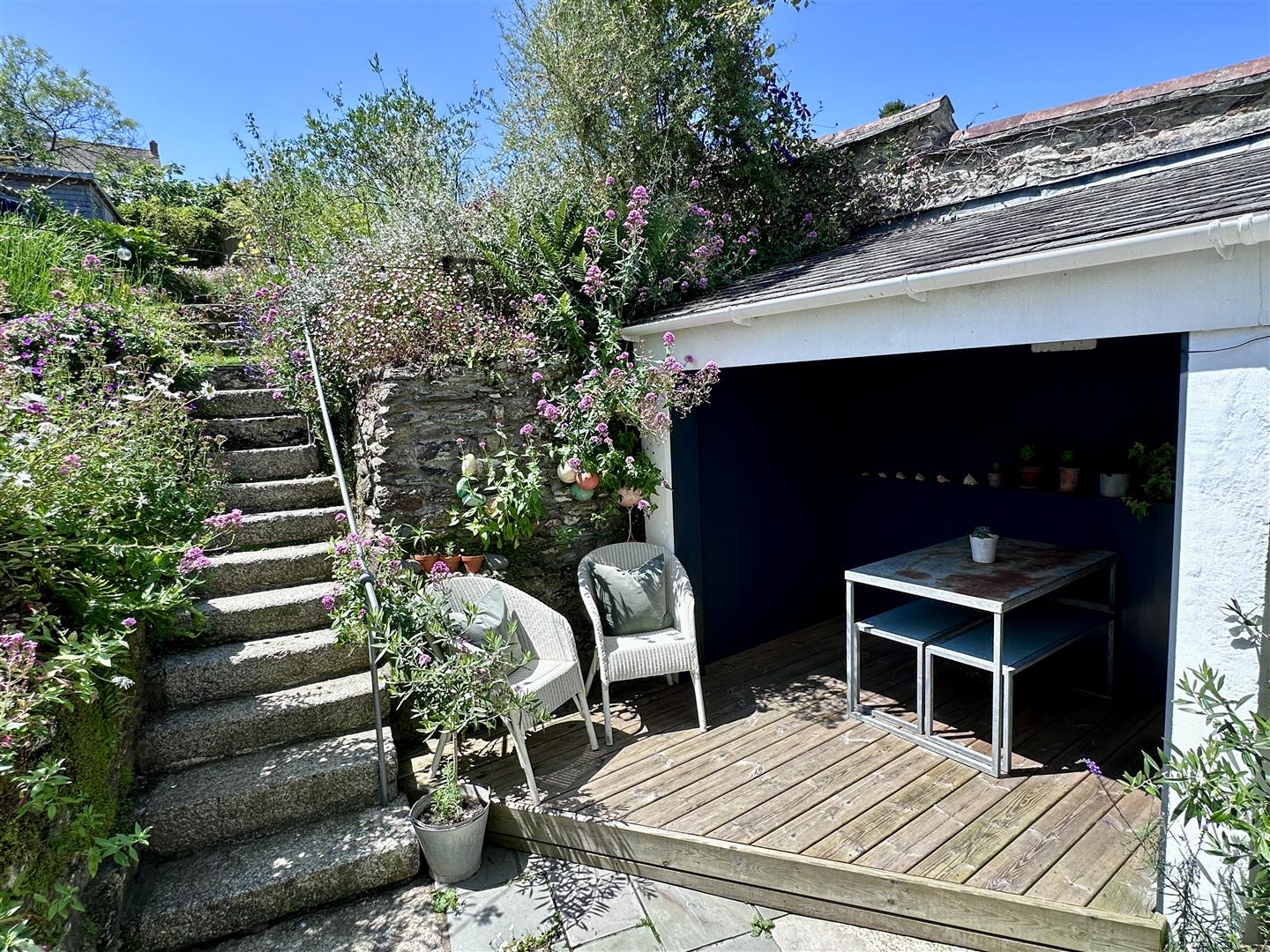 • Covered alfresco dining area/garden room/store with attached gardeners loo - right by the kitchen door