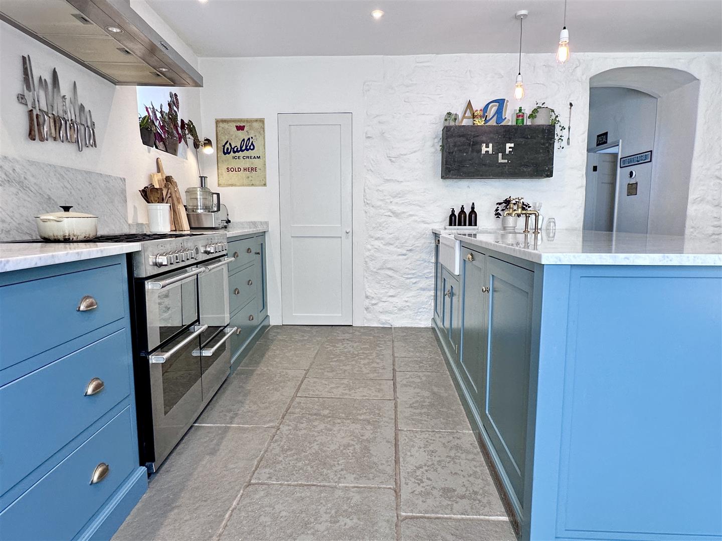 • Magnificent tumbled limestone kitchen flooring with underfloor heating