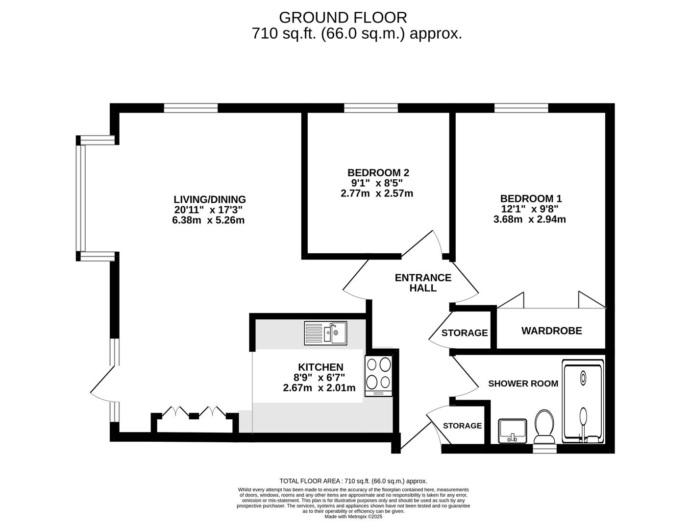 There are two comfortable double bedrooms and a luxurious shower room, with quality hardwood double-glazed windows throughout and thermostatically controlled electric radiators providing efficient heating.
